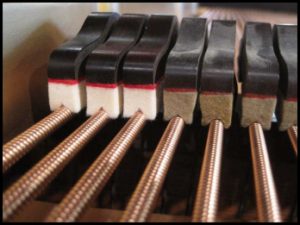 Picture the damper on a piano string. The dampers are those felt cushions that stop the vibrations caused by the hammer. When the hammer strikes the damper is lifted, but if the sustain pedal is not pressed, the damper falls back into place and kills the sound. Dampers are not bad. They serve very useful purpose in music making by not allowing dissonant tones to sound simultaneously and constantly. But we will discuss that in depth later.